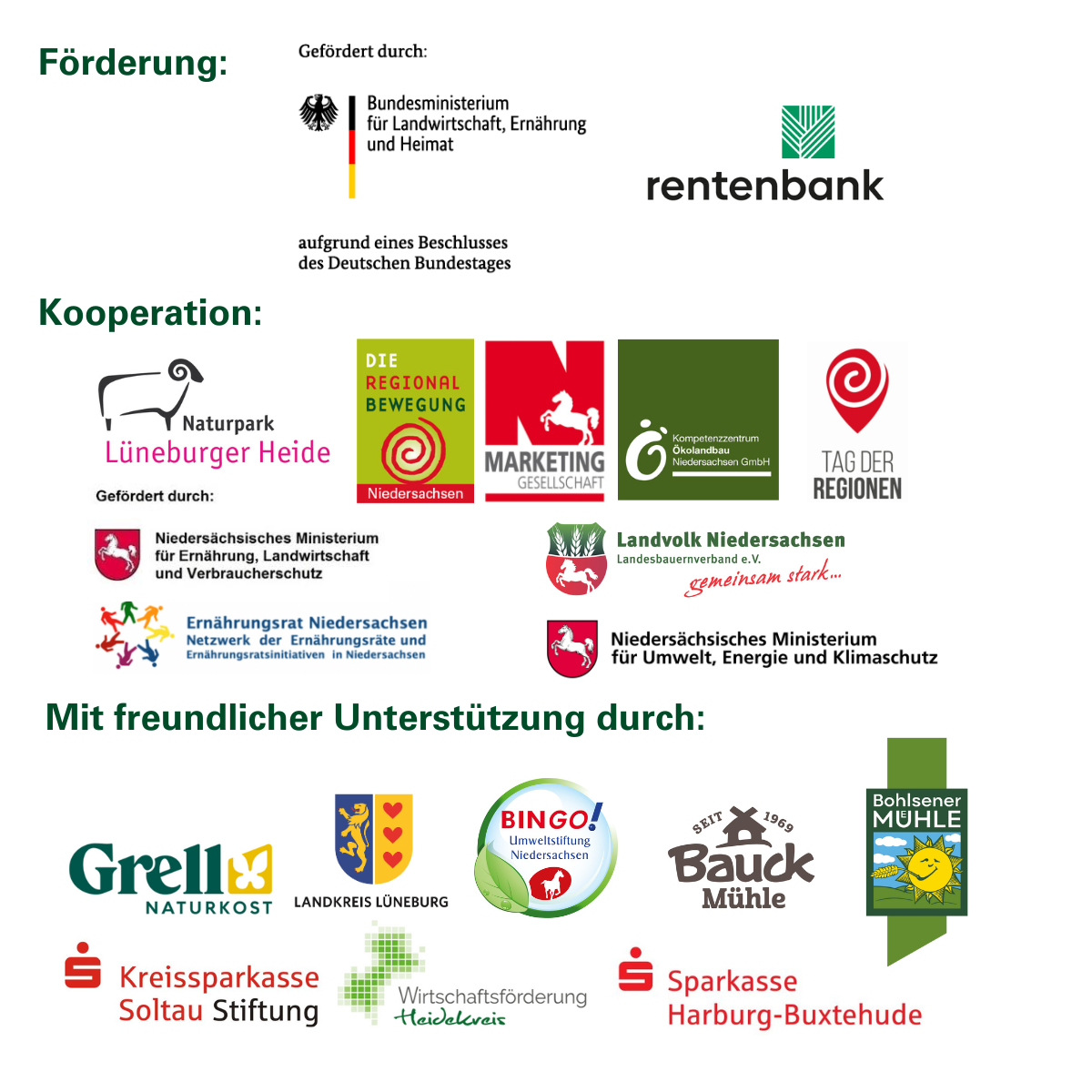 In der Organisation vor Ort in der Lüneburger Heide wurde die Regionalbewegung ganz wunderbar unterstützt von den Kooperationspartnern Naturpark Lüneburger Heide, dem Ernährungsrat Niedersachsen, der Regionalbewegung Niedersachsen, der Marketinggesellschaft der niedersächsischen Land- und Ernährungswirtschaft e.V. sowie dem Kompetenzzentrum Ökolandbau Niedersachsen und der BRB-Veranstaltungsplattform Tag der Regionen.