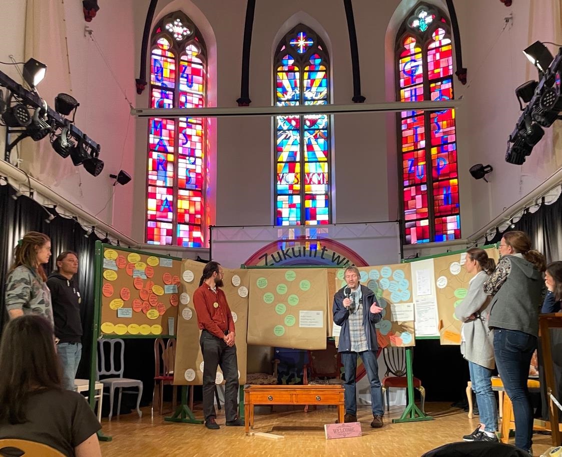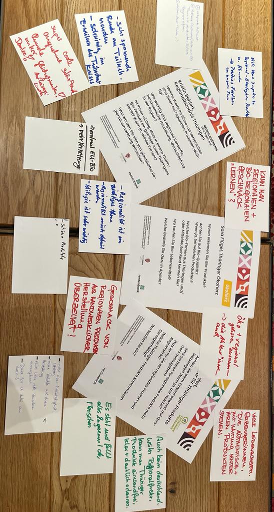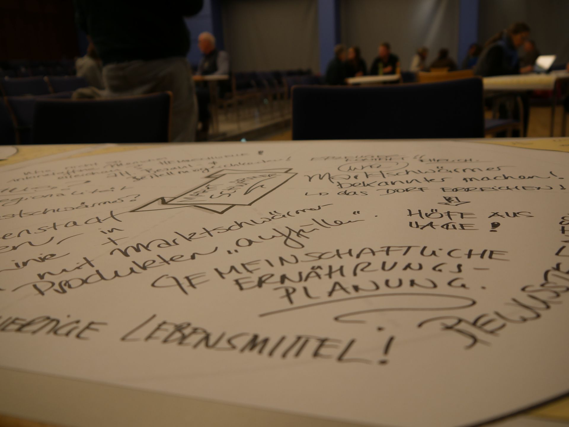 Verschiedene Impulsvorträge geben den Teilnehmenden einen Input für die bestimmende Thematik in der Region. Im Rahmen eines World Café kommen im weiteren Verlauf Erzeugende und Verbrauchende ins Gespräch. Durch mehrere Runden des World Cafés können verschiedene Ansichten eingenommen werden und verschiedene Gesprächspartner*innen zusammenfinden. Abschließend werden die Ergebnisse des World Cafés vorgestellt und mit den Teilnehmenden diskutiert.