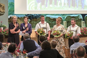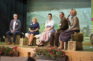 REGIOtalk (v. links): Wolfgang Heinzel (BRB e.V.), Adriane Schua (UNSER LAND Netzwerk), Christine Singer (Landesbäuerin d. Bayer. Bauernverbandes), Dr. Leopold Herz (MdL Freie Wähler), Petra Högl (MdL CSU)_Bild: Anton Brey