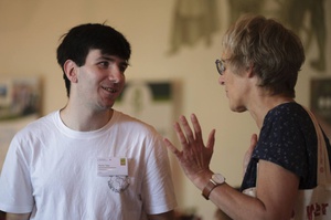 Brigitte Hilcher (BRB e.V.) im Gespräch mit Moritz Tapp (Bundesvorstand BUNDjugend, Mitglied der Zukunftskommission Landwirtschaft)_Bild: Anton Brey