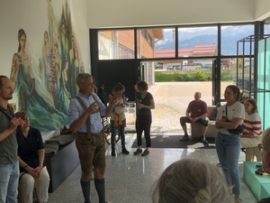 Exkursion Regionale Wertschöpfung der Schafe: Begrüßung durch Thomas Grasegger in der Trachtenmanufaktur in Farchant
