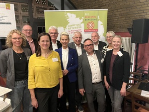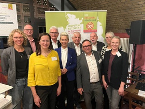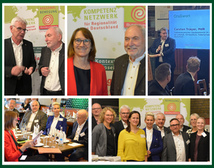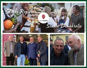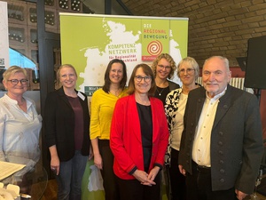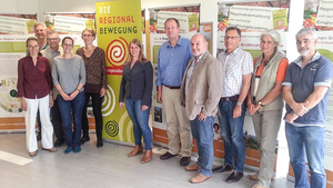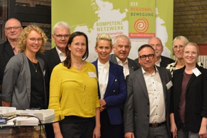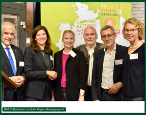 v.l.n.r.: Anna-Lena Buchholz (Fachbereichsleitung Bundesverband der Regionalbewegung e.V.), Dr. Olaf Joachim (Staatssekretär im Bundesministerium für Wohnen, Stadtentwicklung und Bauwesen), Claudia Schreiber (Fachbereichsleitung Bundesverband der Regionalbewegung e.V.), Artur Auernhammer (MdB), Silvia Breher (Parlamentarische Staatssekretärin BMLEH), Hermann Färber (MdB), Lothar Beckler (Vorstandsmitglied Bundesverband der Regionalbewegung e.V.), Heiner Sindel (1. Vorsitzender Bundesverband der Regionalbewegung e.V.), Brigitte Hilcher (Stellvertretende Geschäftsführung und Fachbereichsleitung Bundesverband der Regionalbewegung e.V.), Ilonka Sindel (Geschäftsführung Bundesverband der Regionalbewegung e.V.)
