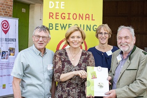 Christian Meyer, Niedersächsischer Minister für Umwelt, Energie und Klimaschutz (Mitte), Heiner Sindel, Bundesverband der Regionalbewegung e.V., 1. Vorsitzender (rechts), Eberhard Prunzel-Ulrich, Beisitzer Vorstand Bundesverband der Regionalbewegung e.V. (links)