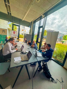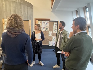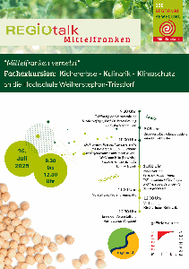 Nach dem Feldbesuch informierten sich die Exkursions-Teilnehmenden über die Herausforderungen des Klimawandels für den Agrarsektor Mittelfranken und das Projekt regiopakt.