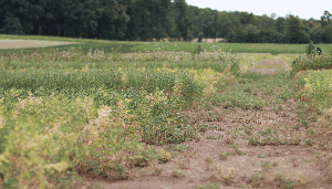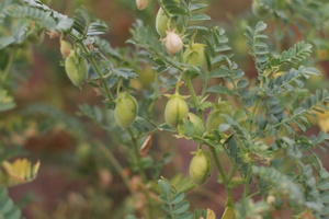 Kichererbsenpflanze auf den Versuchsäckern der LLA Triesdorf.