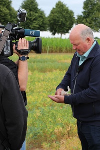 Landwirt Waldemar Hein klärt das BR-Team über die Besonderheiten des regionalen Kichererbsen-Anbaus auf.