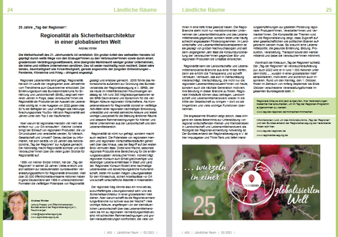 Darin der Regionalbewegungs-Beitrag: "25 Jahre 'Tag der Regionen': Regionalität als Sicherheitsarchitektur in einer globalisierten Welt" von Andrea Winter (Ausgabe 02/2023, S. 24f)